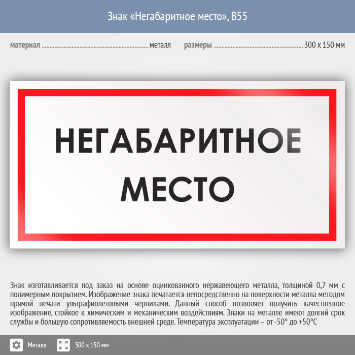 Знак «Негабаритное место», B55 (металл, 300х150 мм) в Нижнекамске купить