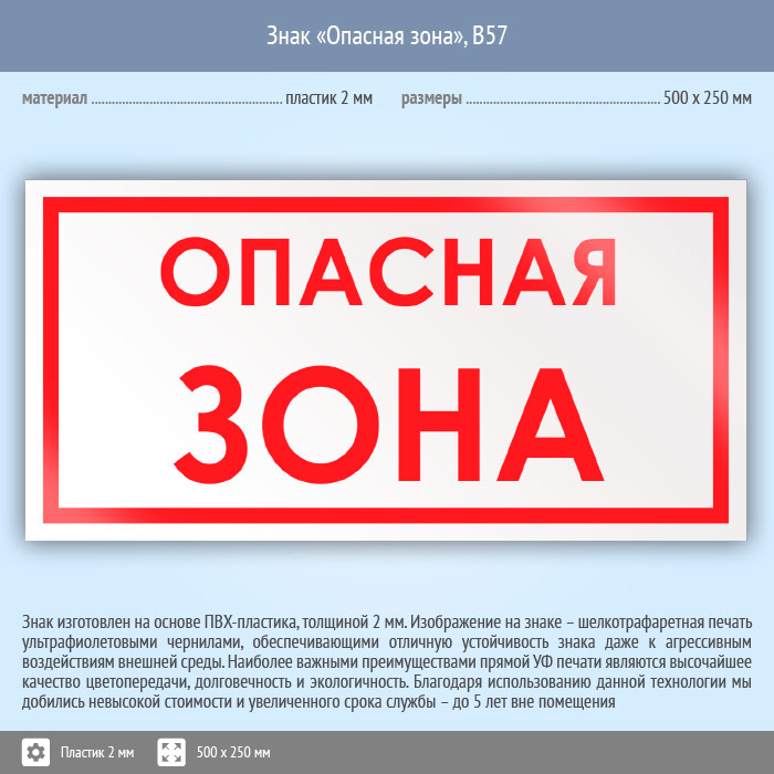 Знак «Опасная зона», B57 (пластик, 500х250 мм) в Нижнекамске купить