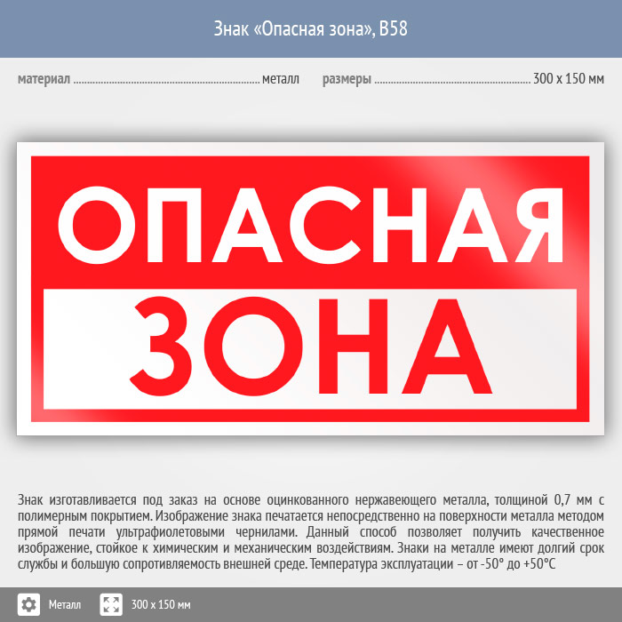 Знак «Опасная зона», B58 (металл, 300х150 мм) в Нижнекамске купить