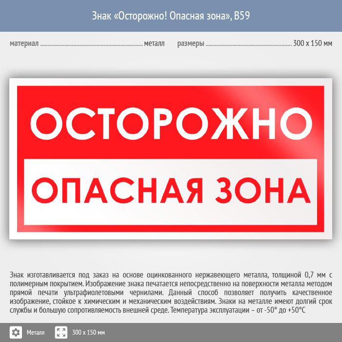 Знак «Осторожно! Опасная зона», B59 (металл, 300х150 мм) в Нижнекамске купить