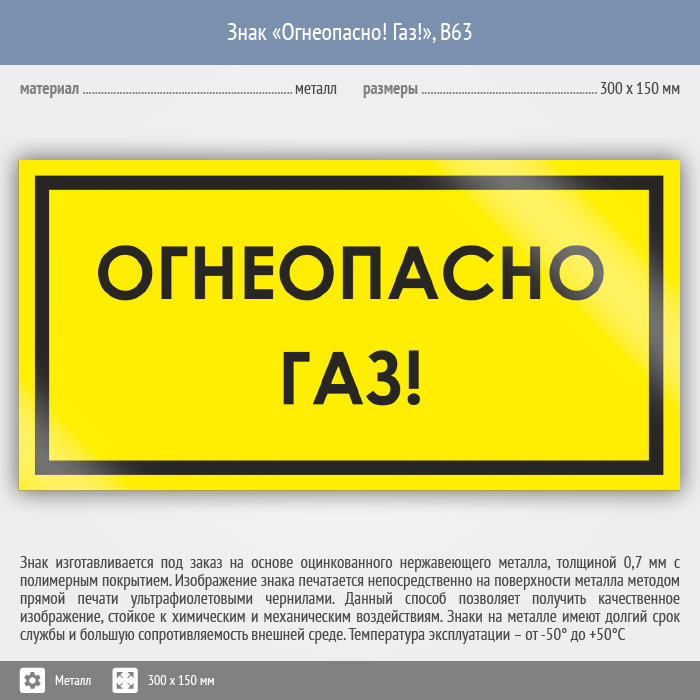 Знак «Огнеопасно! Газ!», B63 (металл, 300х150 мм) в Нижнекамске купить