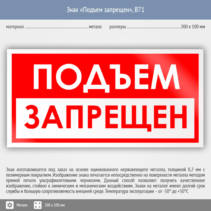 Знак «Подъем запрещен», B71 (металл, 200х100 мм) в Нижнекамске купить