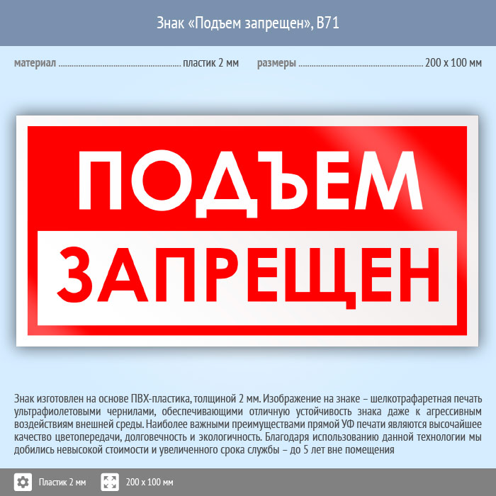Знак «Подъем запрещен», B71 (пластик, 200х100 мм) в Нижнекамске купить