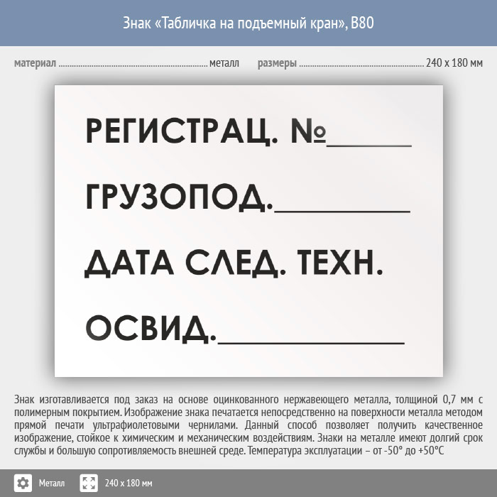 Знак «Табличка на подъемный кран», B80 (металл, 240х180 мм) в Нижнекамске купить