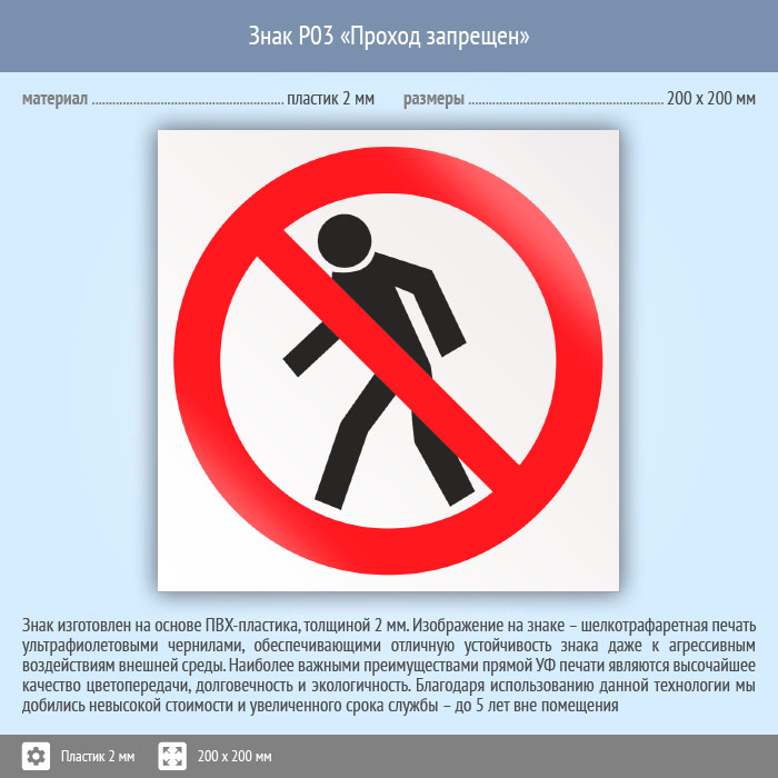 Знак P03 «Проход запрещен» (пластик, 200х200 мм) в Нижнекамске купить