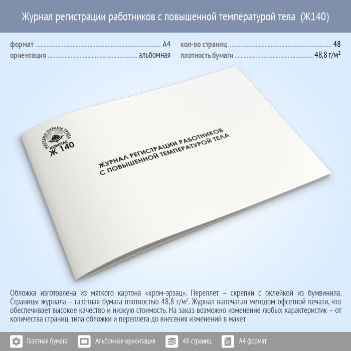 Журнал регистрации работников с повышенной температурой тела (48 стр., Ж140) в Нижнекамске купить