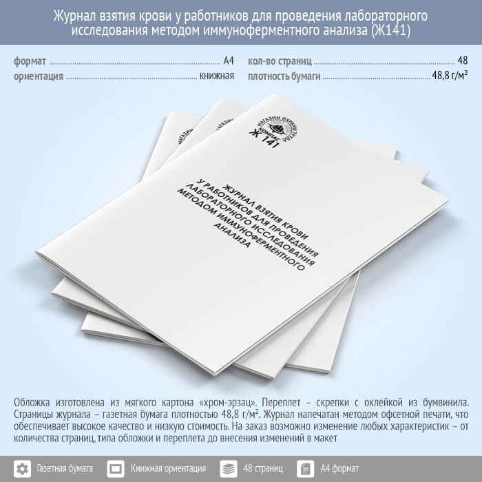 Журнал взятия крови у работников для проведения лабораторного исследования методом иммуноферментного анализа (48 стр., Ж141) в Нижнекамске купить