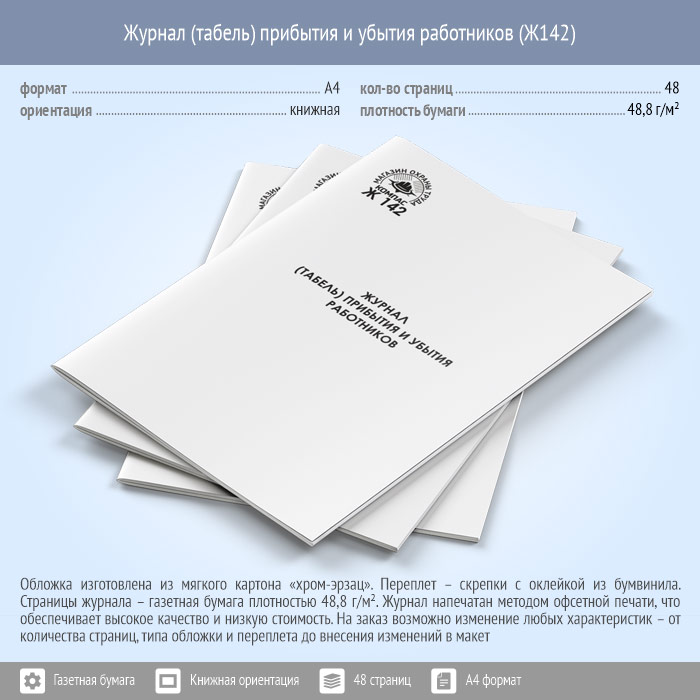 Журнал (табель) прибытия и убытия работников (48 стр., Ж142) в Нижнекамске купить