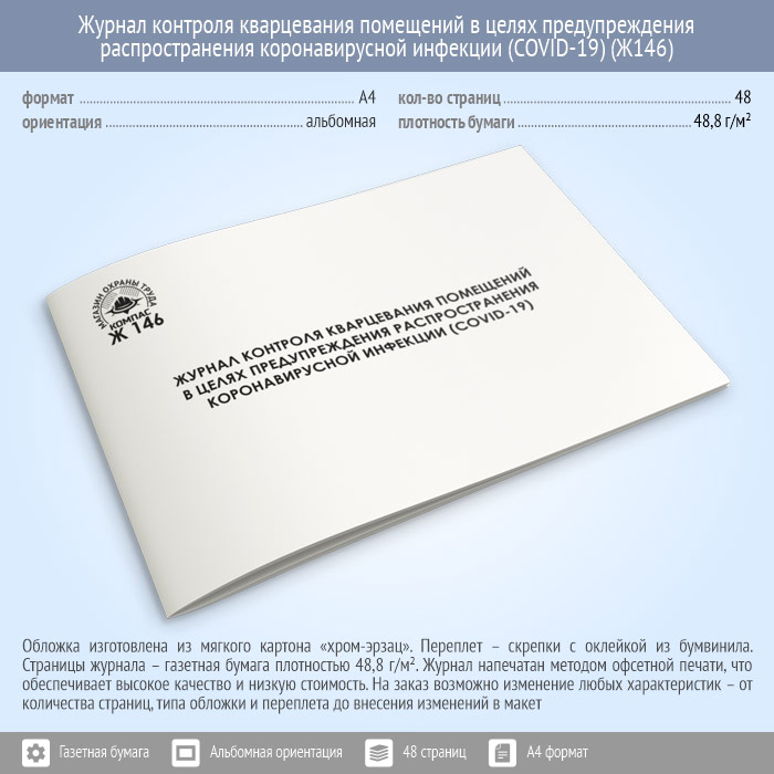 Журнал контроля кварцевания помещений в целях предупреждения распространения коронавирусной инфекции (COVID-19) (48 стр., Ж146) в Нижнекамске купить