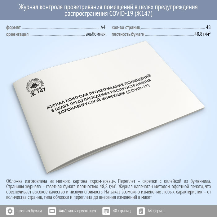 Журнал контроля проветривания помещений в целях предупреждения распространения коронавирусной инфекции (COVID-19) (48 стр., Ж147) в Нижнекамске купить