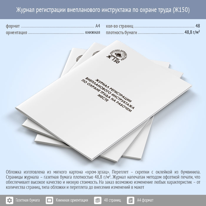 Журнал регистрации внепланового инструктажа по охране труда (48 стр., Ж150) в Нижнекамске купить