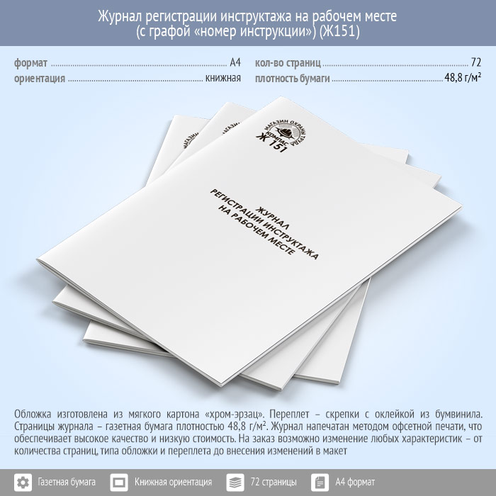 Журнал регистрации инструктажа на рабочем месте (с графой «номер инструкции») (72 стр., Ж151) в Нижнекамске купить