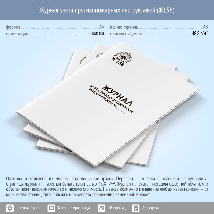 Журнал учета противопожарных инструктажей (48 стр., Ж158) в Нижнекамске купить