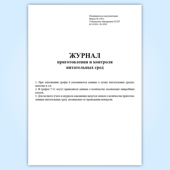 Журнал приготовления и контроля питательных сред (форма 256/у) в Нижнекамске купить