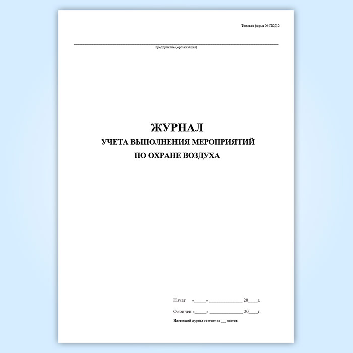 Журнал учета выполнения мероприятий по охране воздуха (форма ПОД-2) в Нижнекамске купить