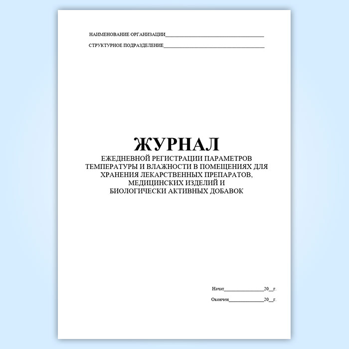 Журнал ежедневной регистрации параметров температуры и влажности в помещениях для хранения лекарственных препаратов, медицинских изделий и биологически активных добавок в Нижнекамске купить