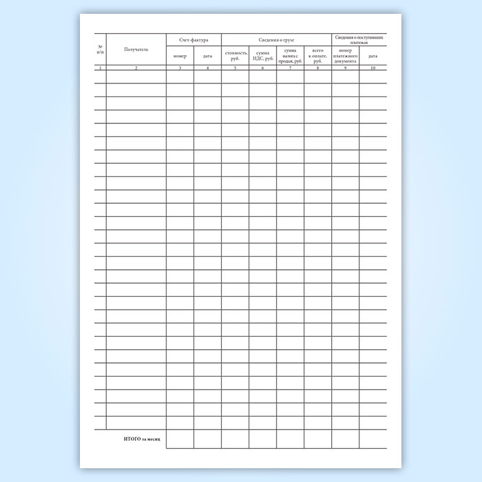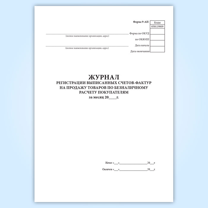 Журнал регистрации выписанных счетов-фактур на продажу товаров по безналичному расчету покупателям (форма 9-АП) в Нижнекамске купить