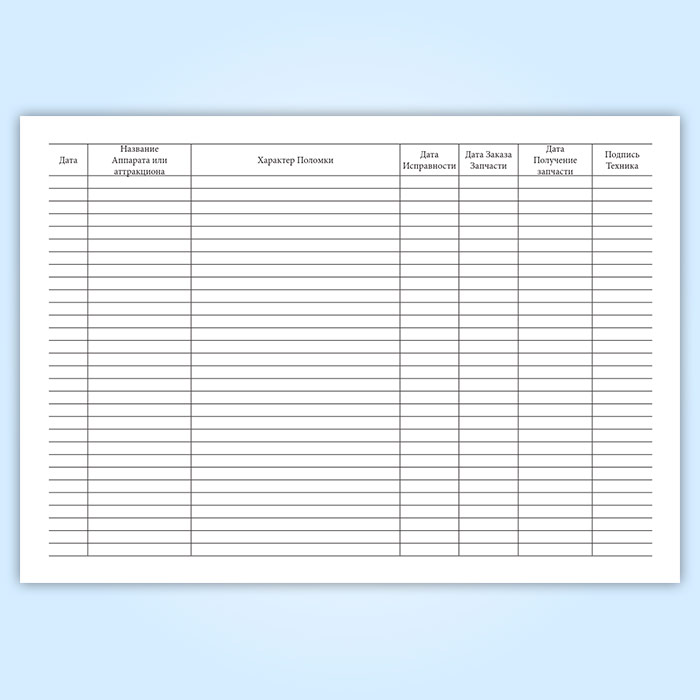 Журнал учета поломки аттракционов и игровых автоматов в Нижнекамске купить
