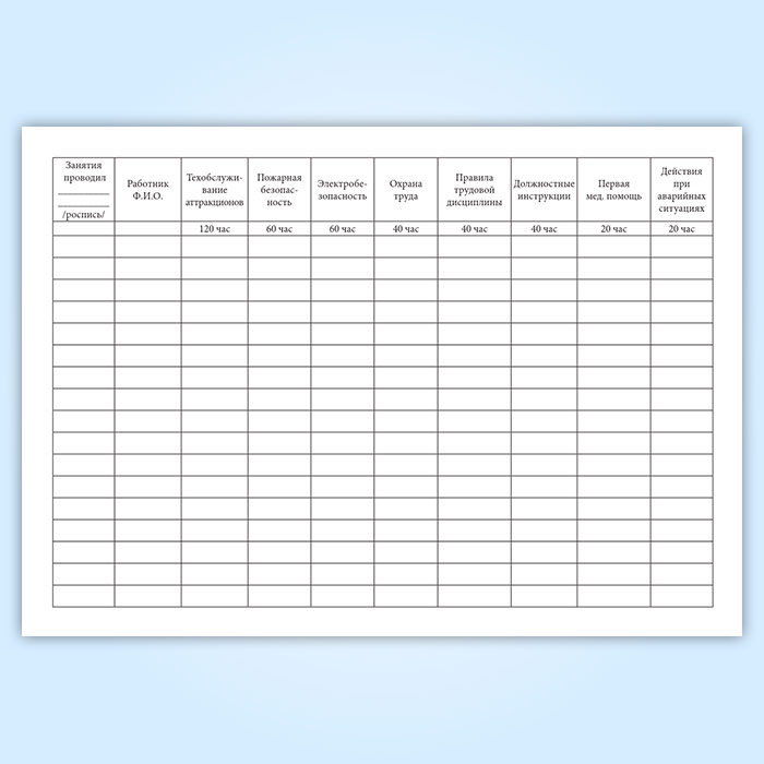 Журнал по обучению персонала передвижного городка аттракционов в Нижнекамске купить