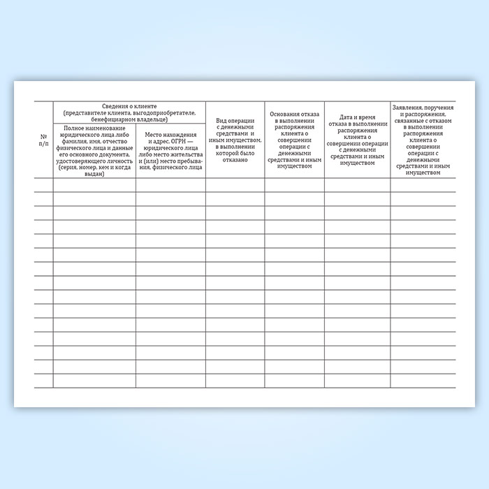 Журнал учета отказов в выполнении распоряжения клиентов о совершении операции с денежными средствами и иным имуществом в Нижнекамске купить