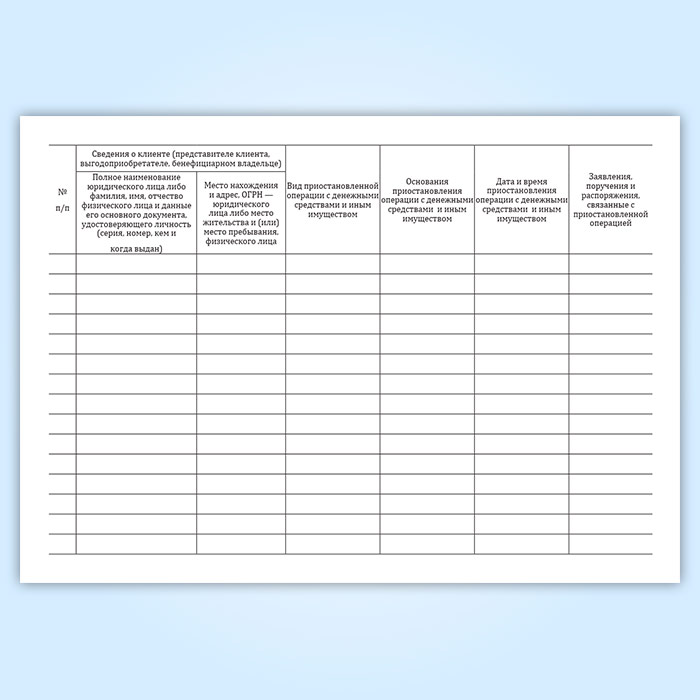 Журнал учета приостановленных операций с денежными средствами и иным имуществом клиента в Нижнекамске купить