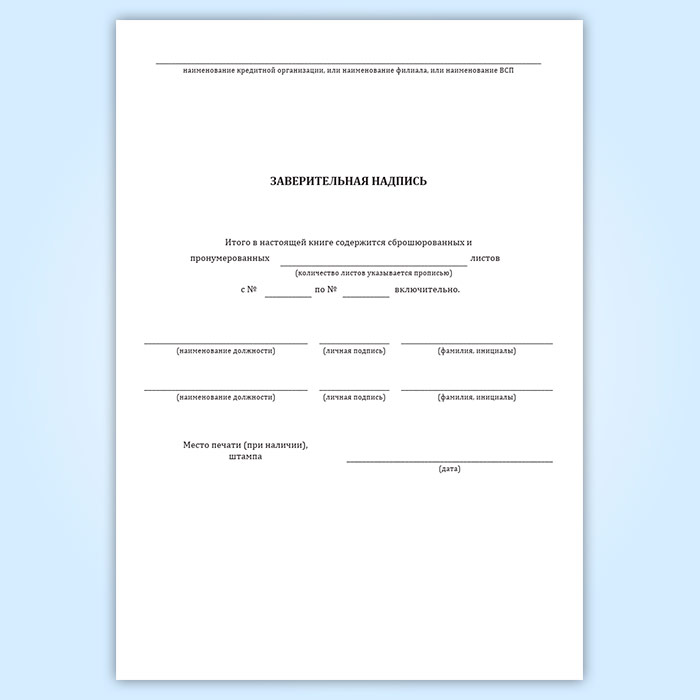 Вы получаете печатную продукцию прошнурованной и c местом для вашей печати в соответствии с действующими нормативными документами: