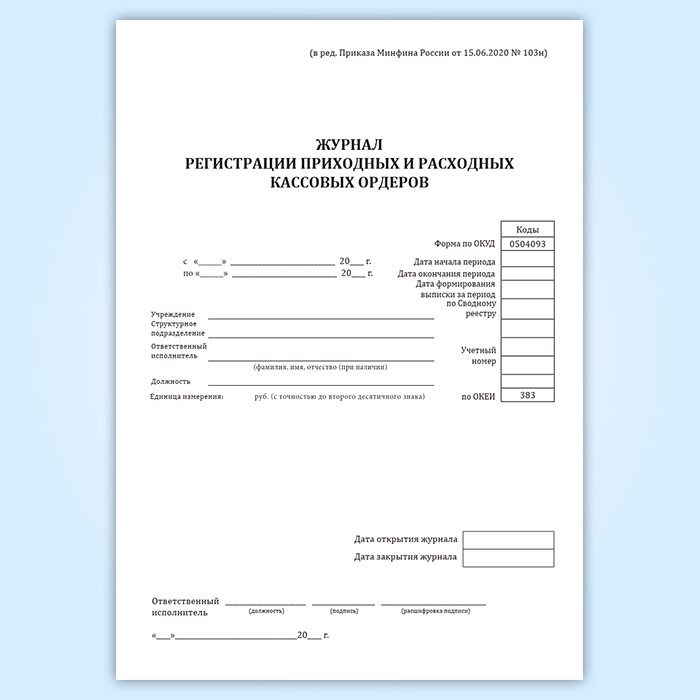 Журнал регистрации приходных и расходных кассовых ордеров (форма по ОКУД 0504093) в Нижнекамске купить