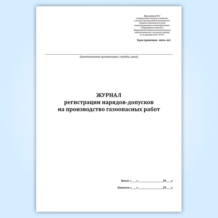 Журнал регистрации нарядов-допусков на производство газоопасных работ в Нижнекамске купить