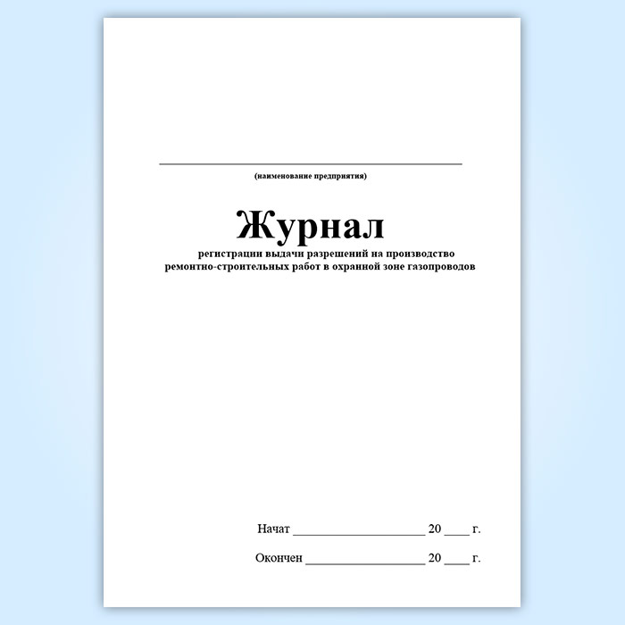 Журнал регистрации выдачи разрешений на производство ремонтно-строительных работ в охранной зоне газопроводов (ГЭГ-14) в Нижнекамске купить