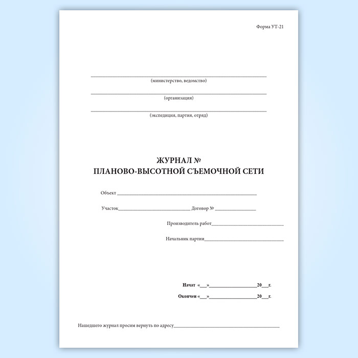 Журнал планово-высотной съемочной сети (форма УТ-21) в Нижнекамске купить