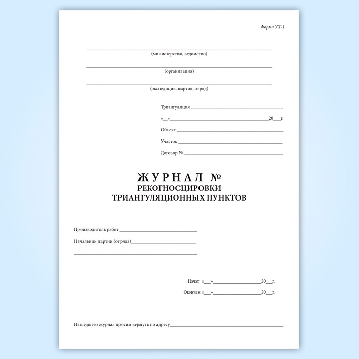 Журнал рекогносцировки триангуляционных пунктов (форма УТ-1) в Нижнекамске купить