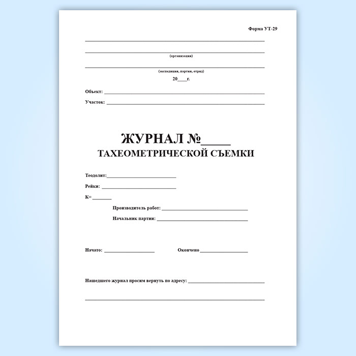 Журнал тахеометрической съемки (форма УТ-29) в Нижнекамске купить