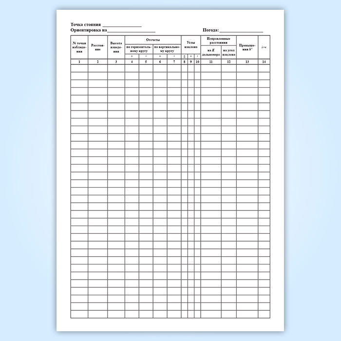Полевой журнал тахеометрической съемки в Нижнекамске купить