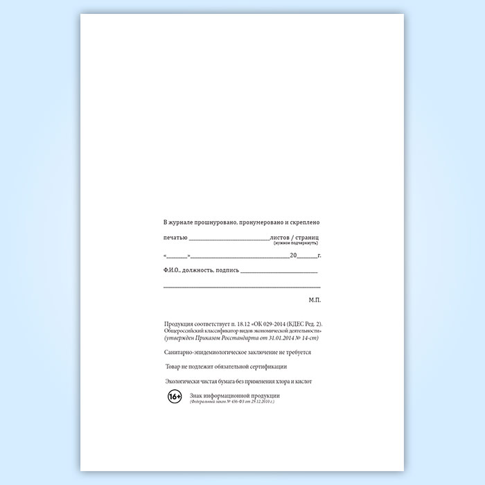Вы получаете печатную продукцию прошнурованной и c местом для вашей печати в соответствии с действующими нормативными документами: