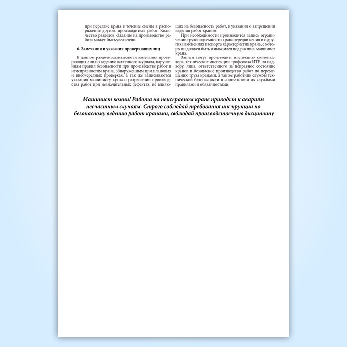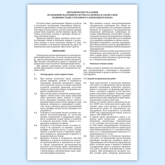 Вахтенный журнал приема-сдачи смен машинистами крана в Нижнекамске купить