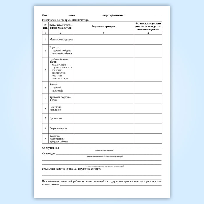Вахтенный журнал приема-сдачи смен машинистами крана-манипулятора в Нижнекамске купить