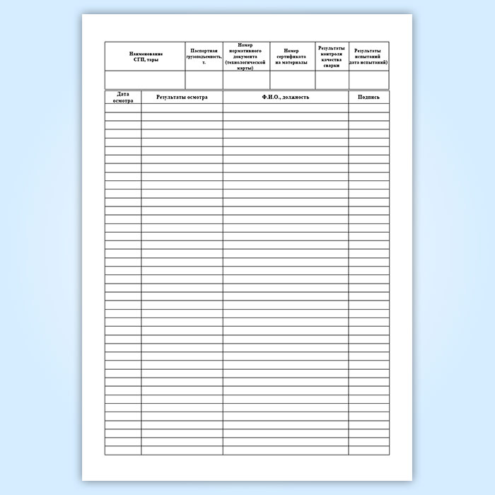 Журнал учета и осмотра съёмных грузозахватных приспособлений и тары (ремонтно-механическая мастерская) в Нижнекамске купить