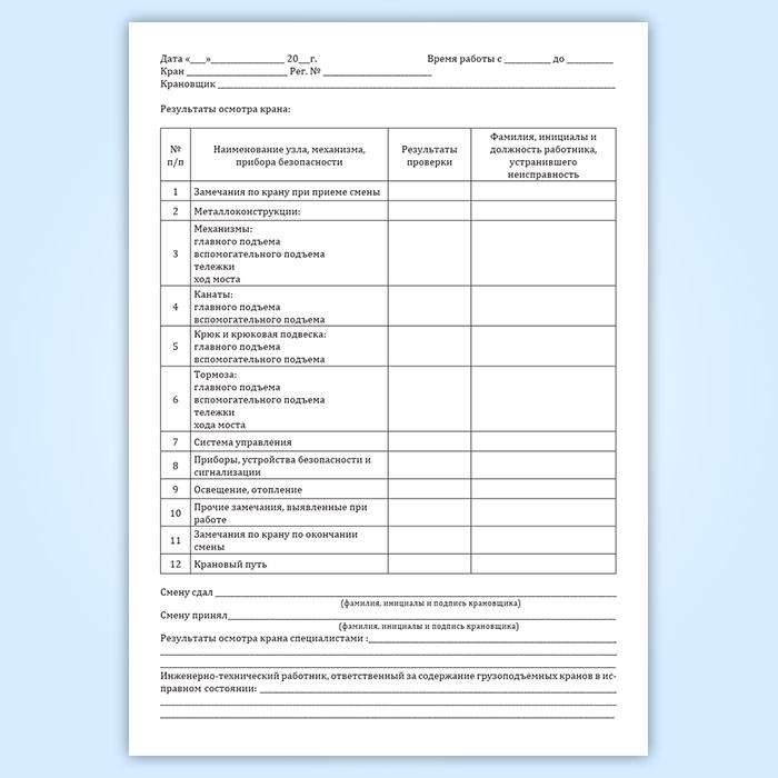 Вахтенный журнал машиниста мостового крана в Нижнекамске купить