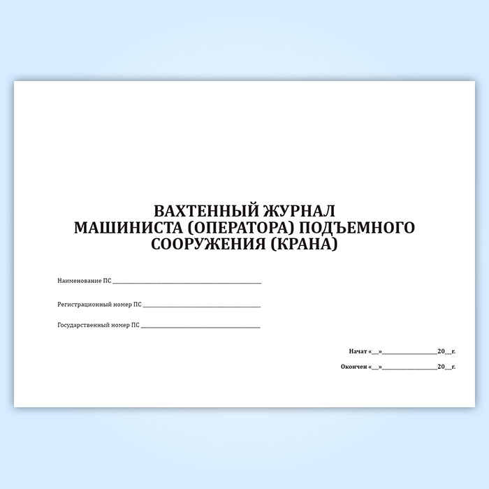 Вахтенный журнал машиниста (оператора) подъемного сооружения (крана) в Нижнекамске купить