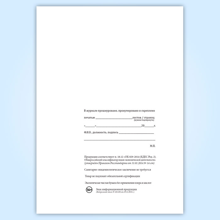Вы получаете печатную продукцию прошнурованной и c местом для вашей печати в соответствии с действующими нормативными документами: