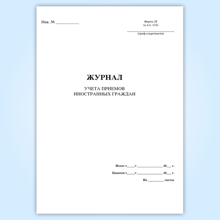 Журнал учета приемов иностранных граждан (форма 20) в Нижнекамске купить