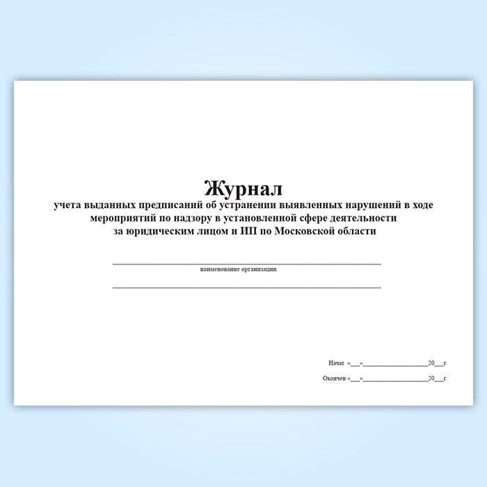 Журнал учета выданных предписаний об устранении выявленных нарушений в ходе мероприятий по надзору в установленной сфере деятельности за юридическим лицом и ИП по Московской области в Нижнекамске купить