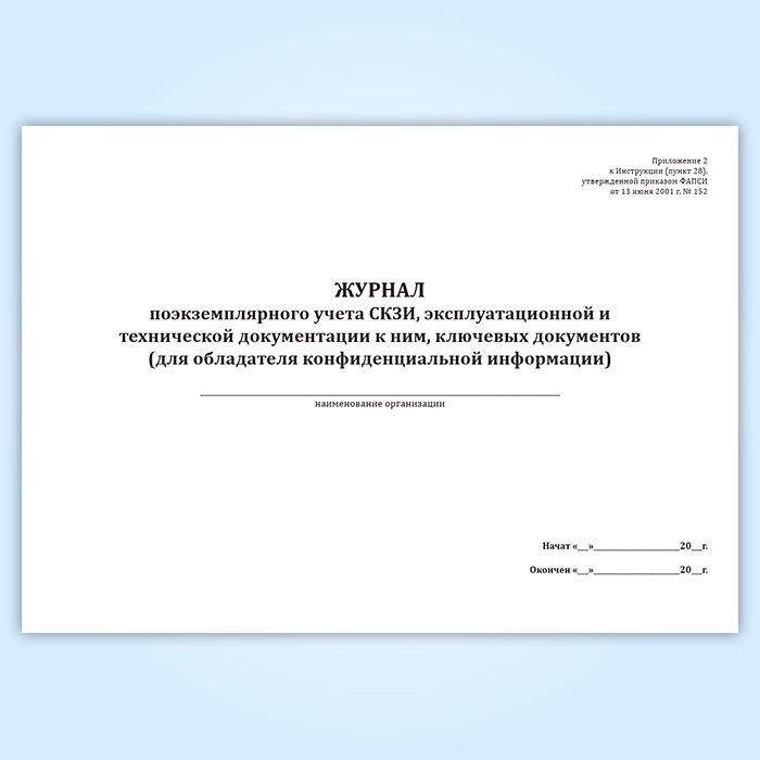 Журнал поэкземплярного учета СКЗИ, эксплуатационной и технической документации к ним, ключевых документов (для обладателя конфиденциальной информации) в Нижнекамске купить