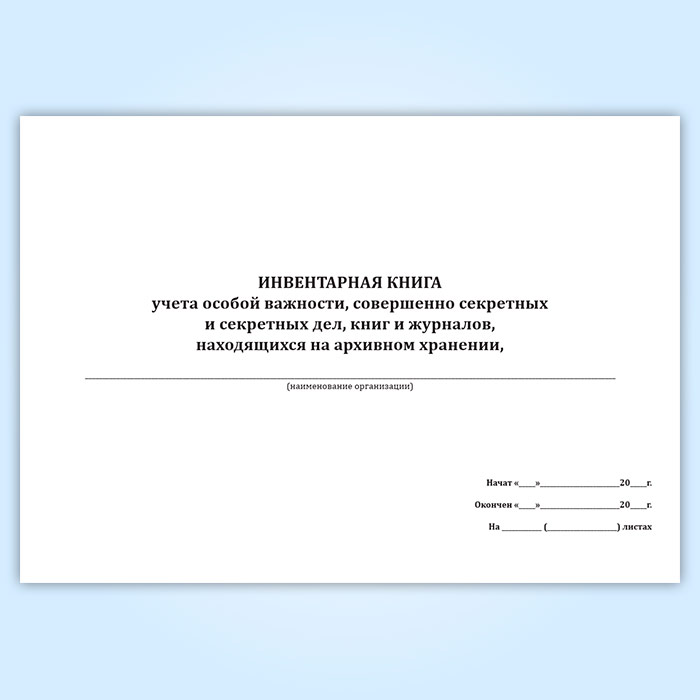 Инвентарная книга учета особой важности, совершенно секретных и секретных дел, книг и журналов, находящихся на архивном хранении в Нижнекамске купить