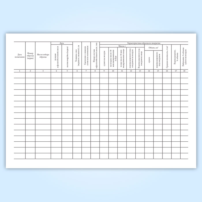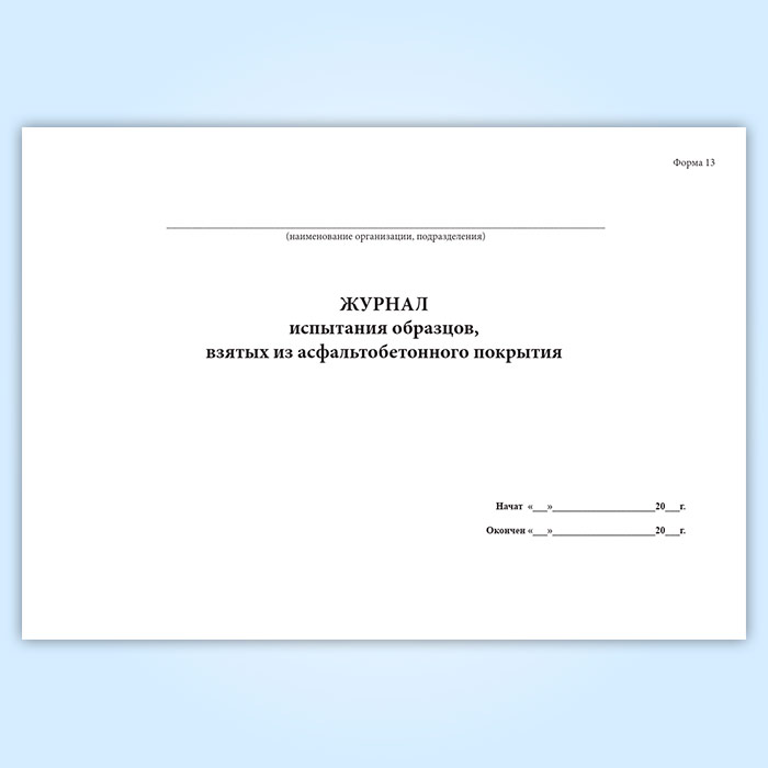 Журнал испытания образцов, взятых из асфальтобетонного покрытия (форма 13) в Нижнекамске купить