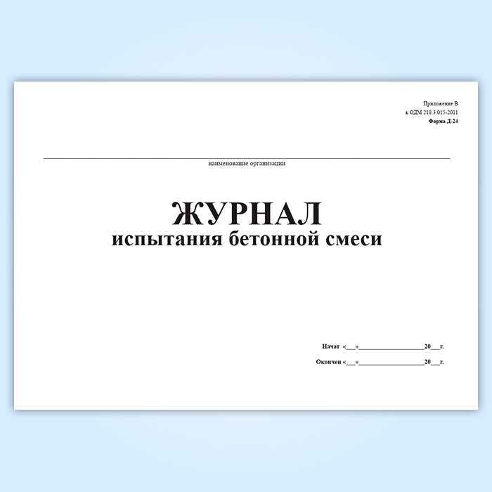 Журнал испытания бетонной смеси (форма № Д-24) в Нижнекамске купить