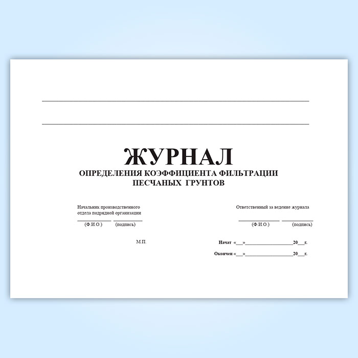 Журнал определения коэффициента фильтрации песчаных грунтов в Нижнекамске купить