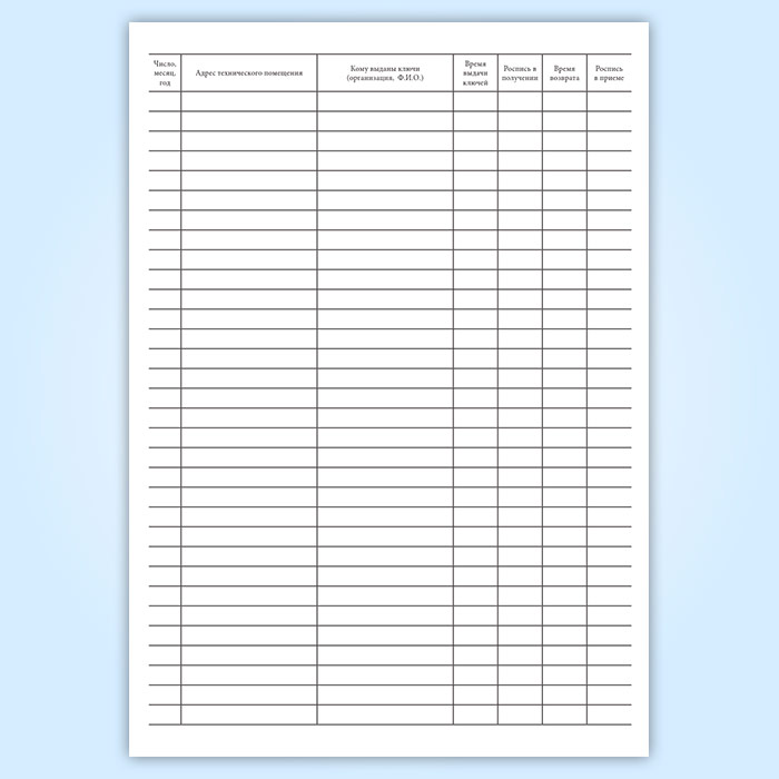 Журнал учета выдачи ключей от технических помещений, контролируемых ОДС в Нижнекамске купить
