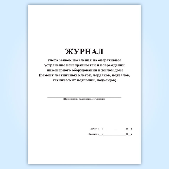 Журнал учета заявок населения на оперативное устранение неисправностей и повреждений инженерного оборудования в жилом доме ремонт лестничных клеток, чердаков, подвалов, технических подполий, подъездов в Нижнекамске купить