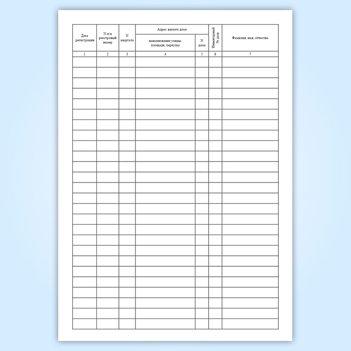 Реестровая книга жилых домов граждан (форма № 7) в Нижнекамске купить